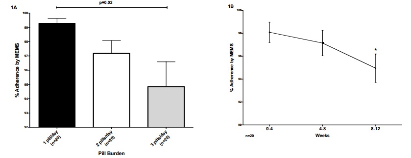 ); "Adherence to short courses of DAA therapy with 1-3 pills once a day was excellent in an urban population with multiple risk factors for non-adherence. Increased pill burden and duration of treatment decreased adherence."