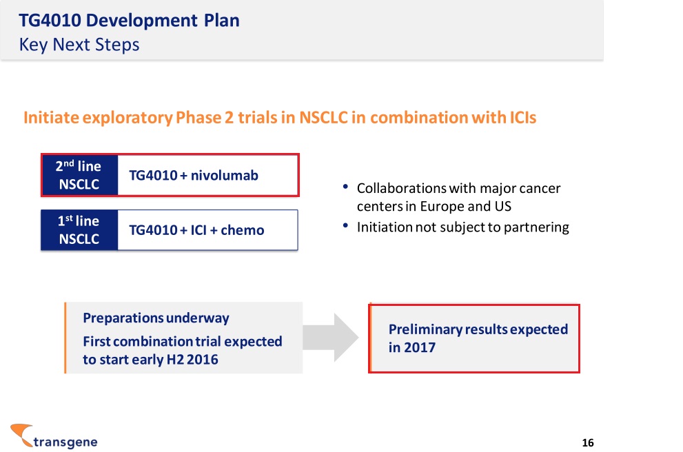 - Anticipated preliminary data from P2 trial (NCT02823990) of TG4010 in combination with nivolumab for 2L NSCLC in 2017