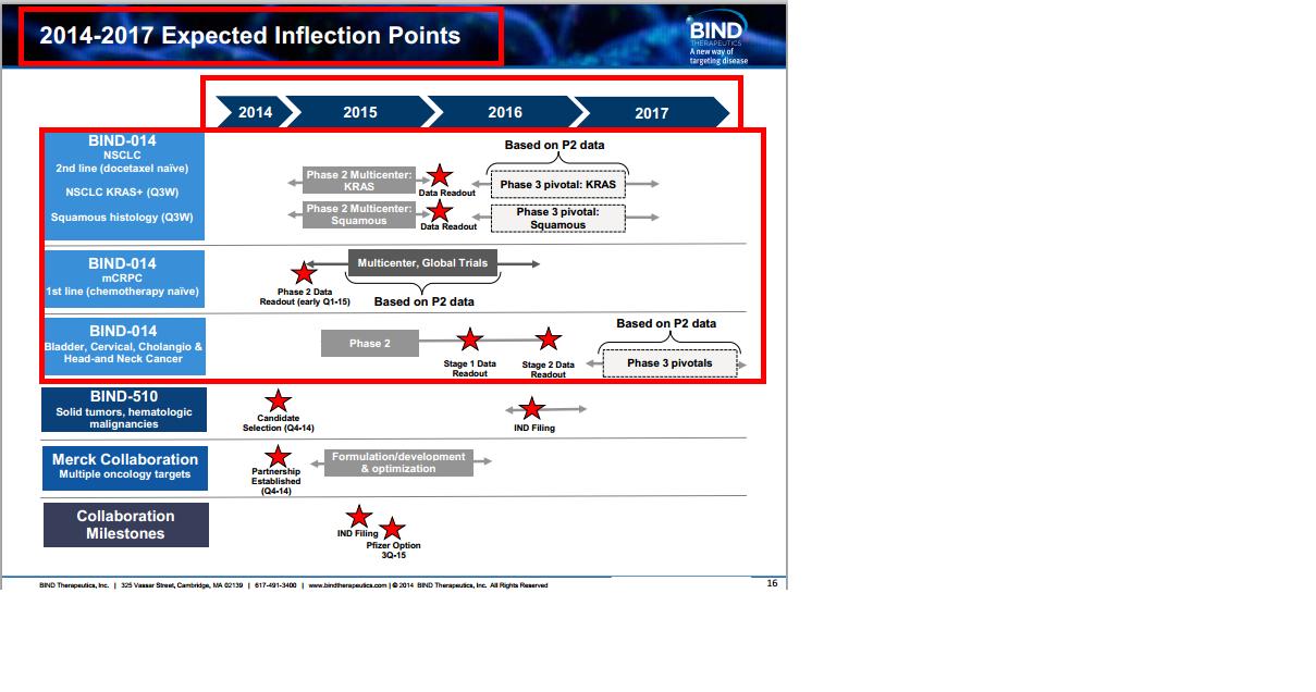 - “In January 2015, we also announced positive topline data from the ongoing Phase 2 trial in mCRPC; however, given the rapidly emerging treatment landscape in mCRPC we have decided not to move forward with the development of BIND-014 in mCRPC and focus our resources on more promising opportunities”