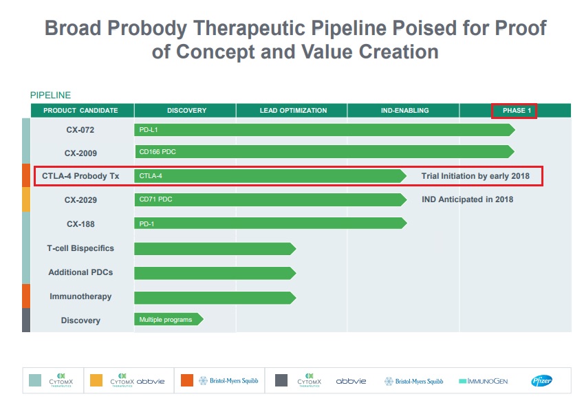 - "CytomX Therapeutics, Inc...announced that its partner, Bristol-Myers Squibb, has initiated a randomized Phase 2 cohort expansion in its ongoing first-in-human Phase 1/2a trial of the anti-CTLA-4 Probody BMS-986249 alone and in combination with Opdivo