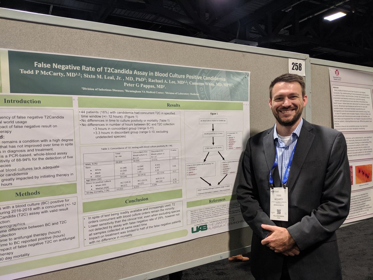 "@TMcCarty2010 rockin it for his poster session. Go chat with him ! @DrPappasID @DrJeanneM #IDWeek2019"