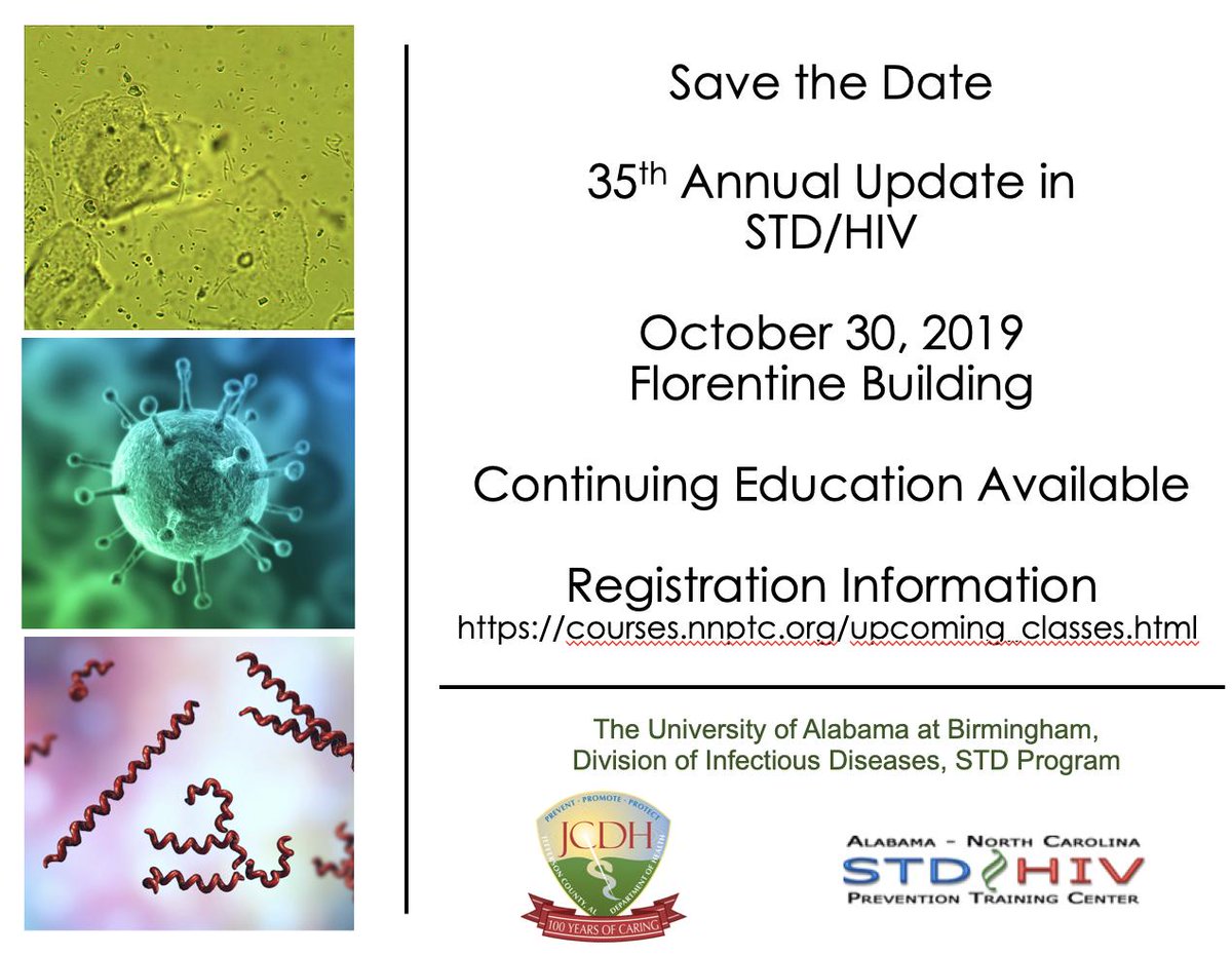 "Join us for another excellent #CME #CNE @uabmedicine #STI #HIVprevention #update this fall at the beautiful @REVbham Florentine building! @uabcfar @TMcCarty2010 @jcdhtweets We'll b talking #PrEP #WomensHealth & lots more"