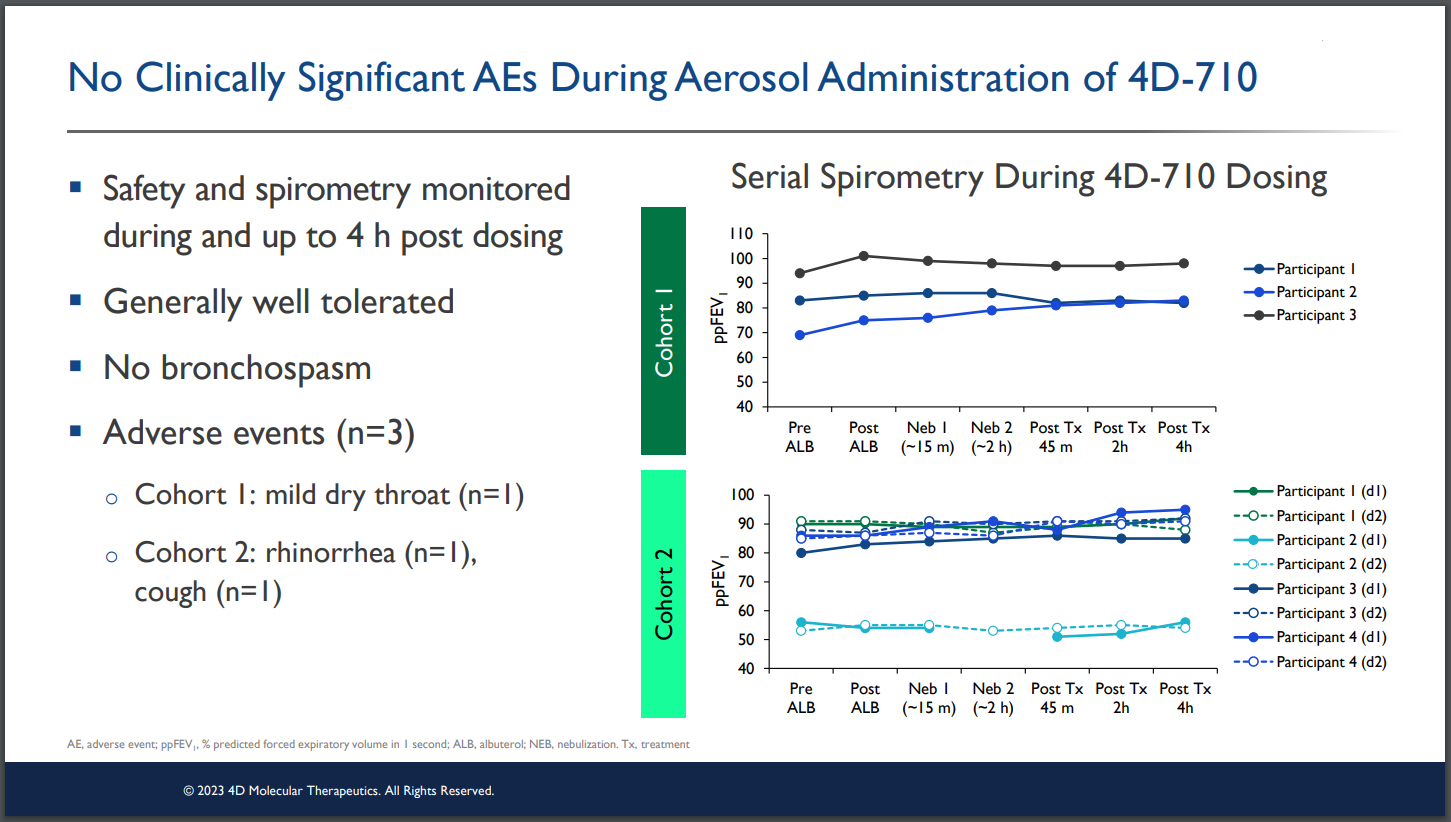 4D-710: “No clinically significant AEs during aerosol administration of 4D-710”; Cystic fibrosis