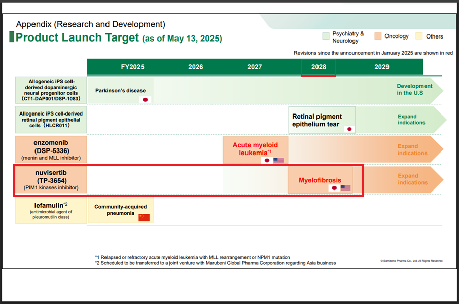 - FY2024 Results: Launch in US/Japan for myelofibrosis in FY 2028