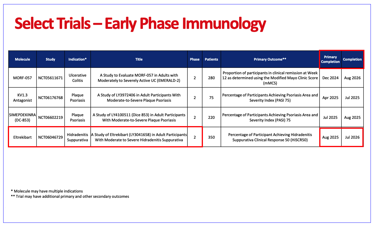 - Q2 2025 Results: Completion of P2 trial for adult participants with moderate to severe hidradenitis suppurativa in Jul 2026