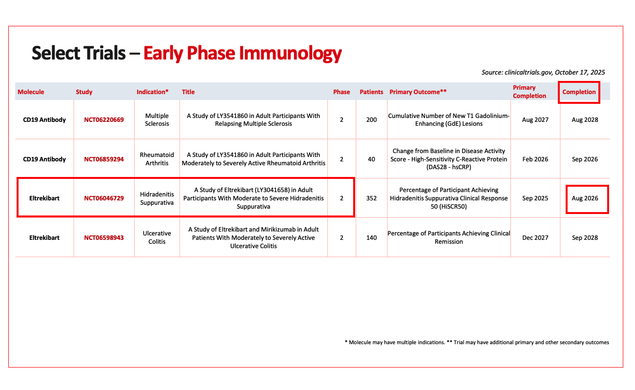 Eltrekibart: Completion of P2 trial (NCT06046729) for adult participants with moderate to severe hidradenitis suppurativa in Aug 2026